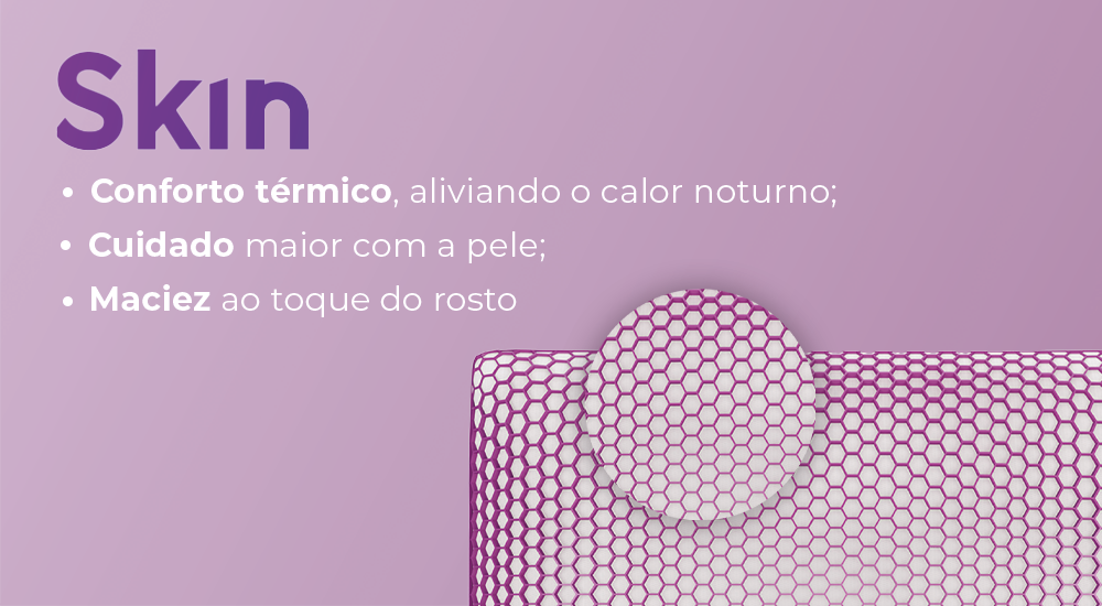 O Travesseiro Skin® é o melhor travesseiro antirrugas para quem busca prevenir rugas do sono (sleep lines) e manter uma rotina eficaz de skincare. Desenvolvido com tecnologia exclusiva, feito para evitar marcas e rugas causadas pelo contato prolongado do rosto com o travesseiro.