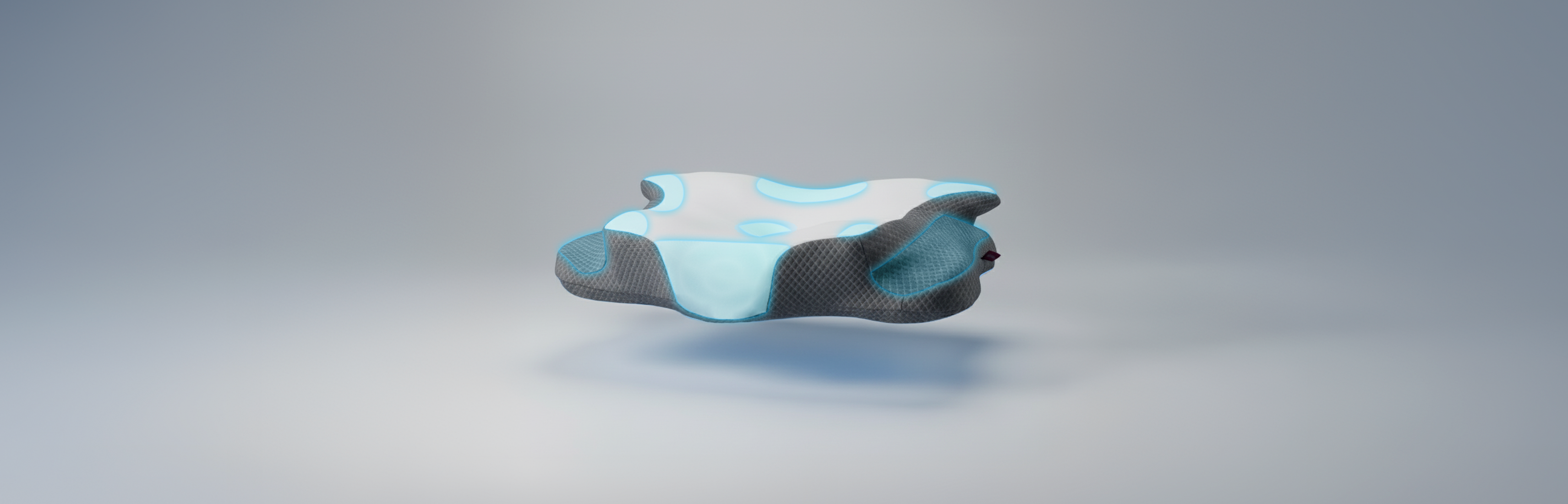 Malha térmica tecnológica com microcanais de ventilação que favorecem a troca de ar e a dispersão ativa do calor corporal. Sua estrutura tridimensional atua em conjunto com o memory foam, mantendo a temperatura até 5 °C mais fresca e proporcionando uma sensação de resfriamento imediato.