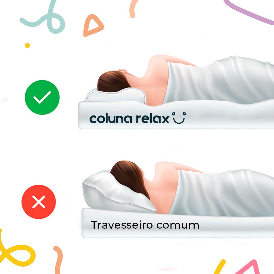 O Travesseiro Cervical Coluna Relax® alivia as dores no pescoço e costas corrigindo a postura enquanto você dorme.