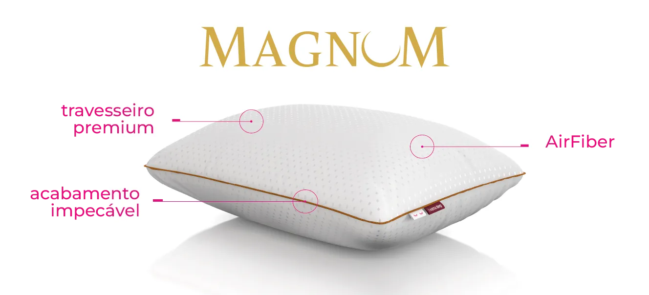 O conforto premium de hotéis de luxo diretamente na sua cama: o Travesseiro Magnum AirFiber tem a função de entregar o máximo de aconchego e suavidade.