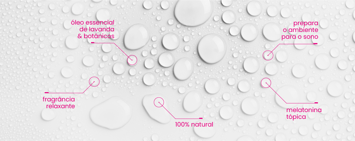 Muito mais do que uma simples "água perfumada", o Sleepspray™️ tem uma composição que combina óleos essenciais de lavanda & botânicos, além da melatonina, que em conjunto agem de forma terapêutica para promover um sono mais tranquilo e reparador.
