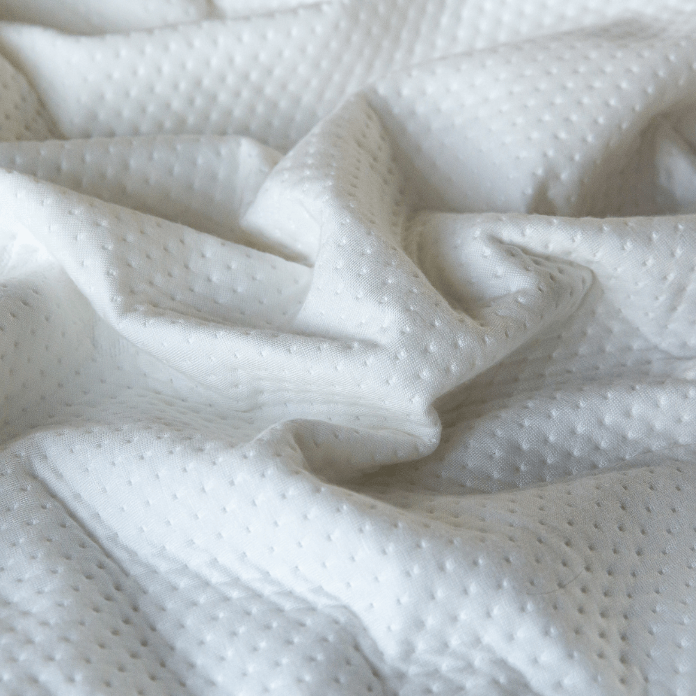 Toque suave que não interfere no conforto de outros materiais, como lençóis e fronhas. Feito de fibra de bambu, garante uma superfície macia e agradável ao toque.