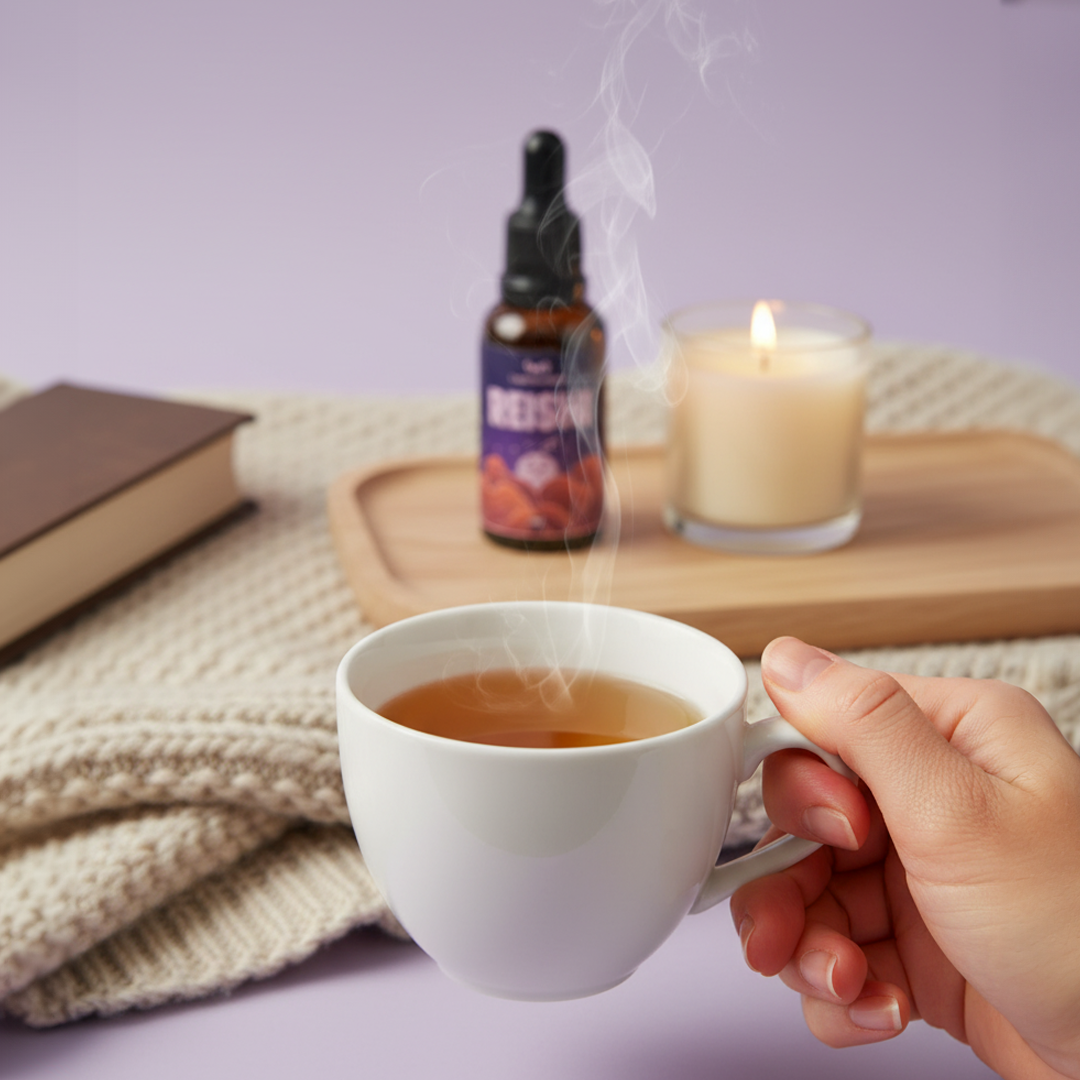 Dilua 30 gotas em sua bebida preferida — como chás, leites vegetais ou sucos.