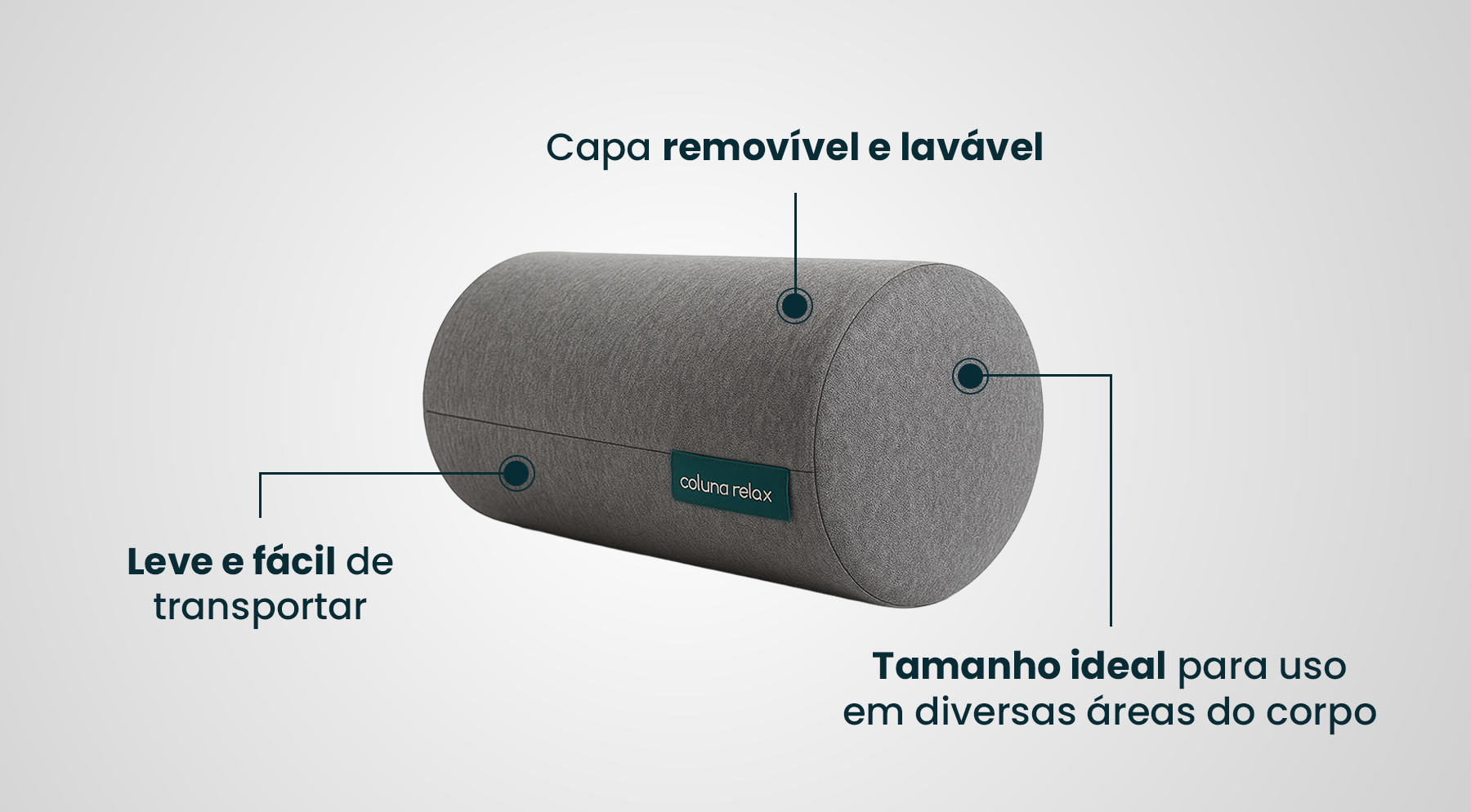 O Rolo Lombar Multiuso Coluna Relax® é um órtese ortopédica versátil, indicada por fisioterapeutas para o alívio eficaz de dores nas costas, lombar e pescoço.
