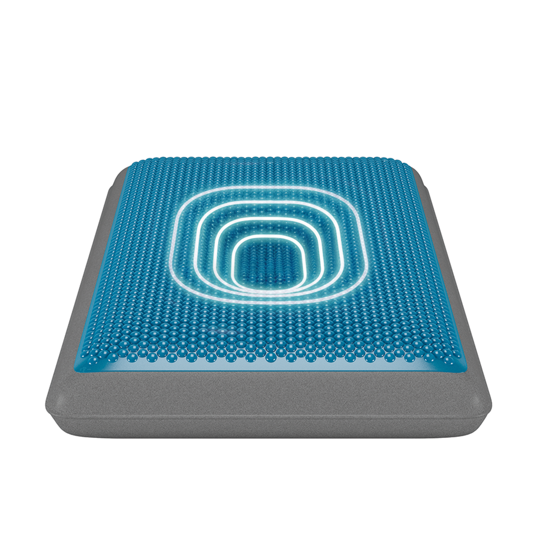 O Bubble Gel® tem uma cavidade ergonômica no centro para aliviar a pressão nas orelhas quando deitado de lado ou de barriga para baixo. Ao deitar de costas, as cavas se encaixam perfeitamente na nuca, proporcionando um correto alinhamento da coluna.