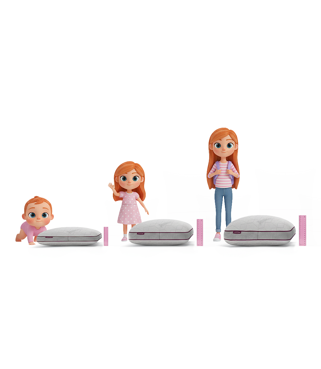 Ao recebê-lo, você poderá retirar o volume de espumas para chegar na altura ideal. E depois, à medida que as crianças forem crescendo, você pode ir retornando as espumas para o travesseiro, de modo que ele acompanhe o crescimento da criança :)
